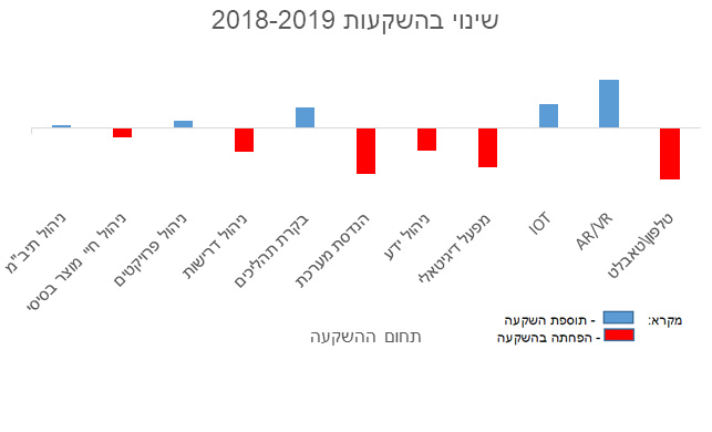 - בשנים האחרונות קיימת מגמת עלייה בהשקעה בטכנולוגיות חדישות (כמו AI, Big Data, IoT, AR ו-VR) על מנת שהארגון יוכל לבדל את עצמו בשוק ולזכות ביתרון על פני מתחריו.